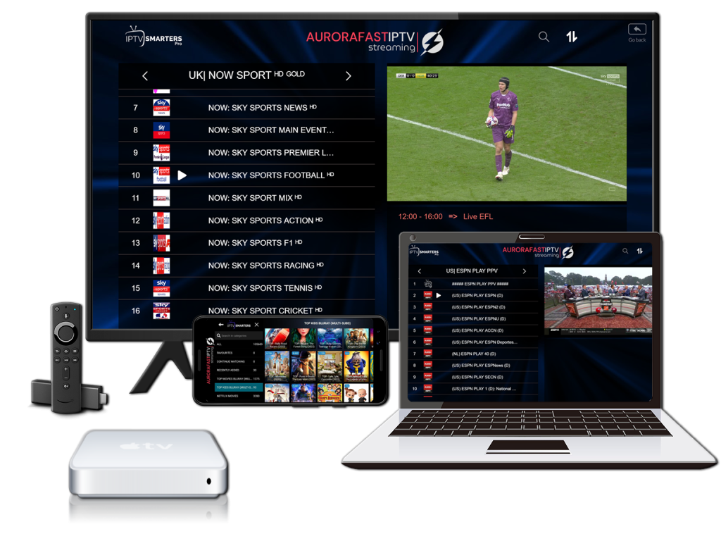 Watch on your favorite devices: Android Box, Smartphones, Tablets, Laptops, MAG, Smart TVs, KODI, iOS, Apple devices, and more!